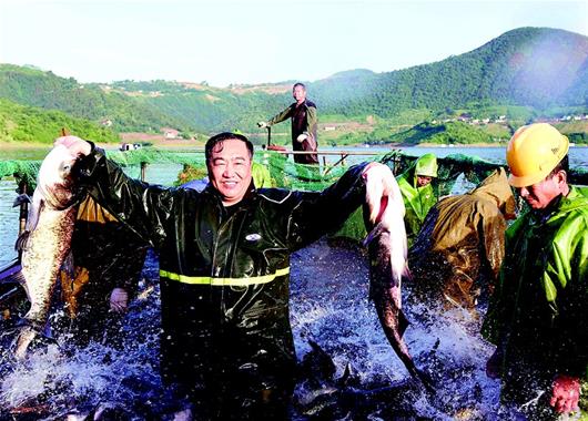 6月3日,保康縣寺坪鎮(zhèn)南河漁業(yè)農(nóng)民專業(yè)合作社漁民在收網(wǎng)捕魚。該合作社由112戶村民組成,進(jìn)行立體生態(tài)深水養(yǎng)魚,10多種生態(tài)魚深受消費(fèi)者青睞,暢銷成都、廣州、重慶、南京、北京等城市,社員戶均年增收3萬元以上。近年來,?悼h全面推行河庫(kù)長(zhǎng)制,大力實(shí)行退耕還林、天然林保護(hù)等生態(tài)修復(fù)工程,庫(kù)區(qū)水環(huán)境越來越好,讓當(dāng)?shù)匕傩障硎艿搅恕熬G水青山就是金山銀山”的紅利。(視界網(wǎng) 陳泉霖 攝)