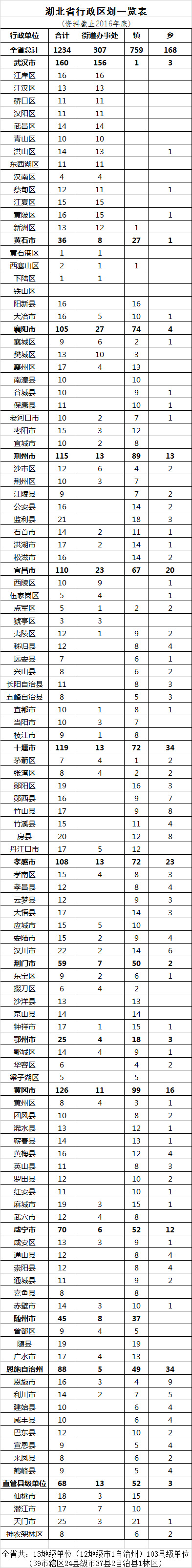 關鍵詞:湖北;行政區(qū)劃;調整;一覽表