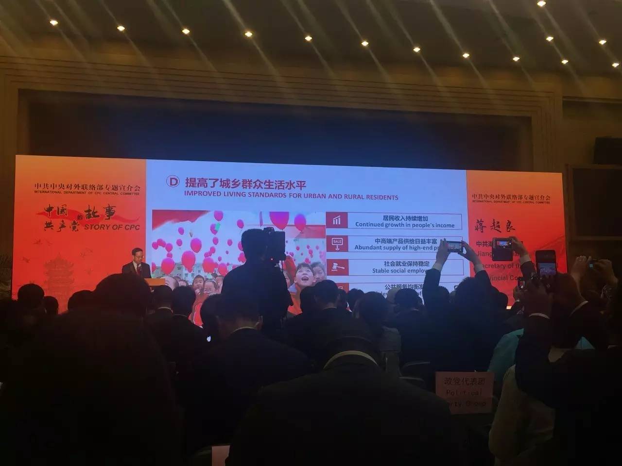 政知局(微信ID:bqzhengzhiju)注意到,臺(tái)下坐著的是來(lái)自印度、巴基斯坦、巴勒斯坦、緬甸、剛果(金)、坦桑尼亞、摩爾多瓦、挪威、世界銀行等國(guó)家政黨、國(guó)際組織的負(fù)責(zé)人以及駐華使節(jié)。