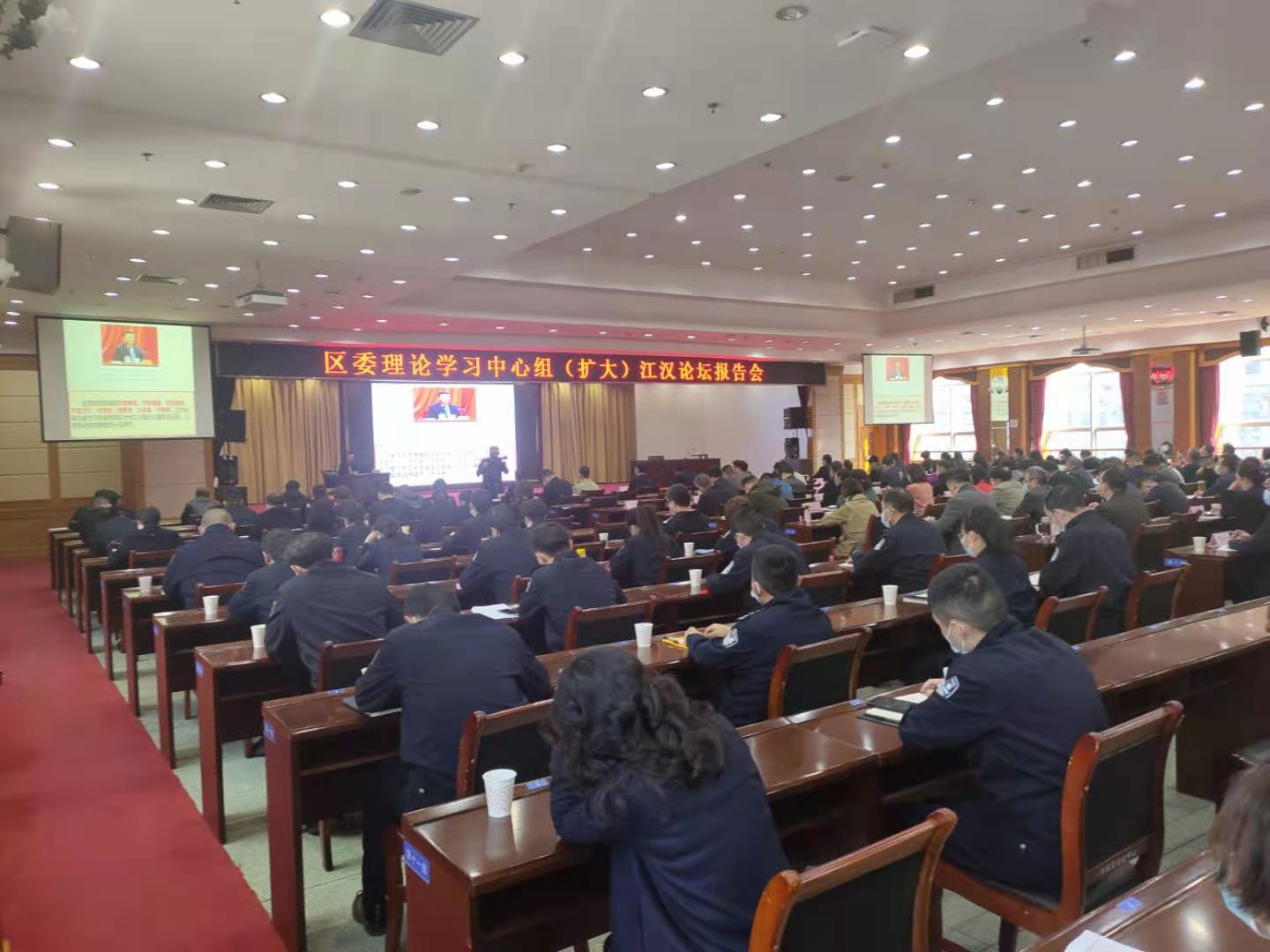 央廣網(wǎng)武漢3月25日消息(記者張迪 通訊員朱素芳 鄧文錦)3月25日下午,武漢市江漢區(qū)委理論學(xué)習(xí)中心組(擴(kuò)大)舉辦“江漢論壇”報(bào)告會(huì)。會(huì)上,武漢市委黨校教授翟一博作黨史學(xué)習(xí)教育輔導(dǎo)報(bào)告,江漢區(qū)委、區(qū)人大常委會(huì)、區(qū)政府、區(qū)政協(xié)領(lǐng)導(dǎo)班子成員及各街道各部門各單位黨政主要負(fù)責(zé)人參加學(xué)習(xí)。