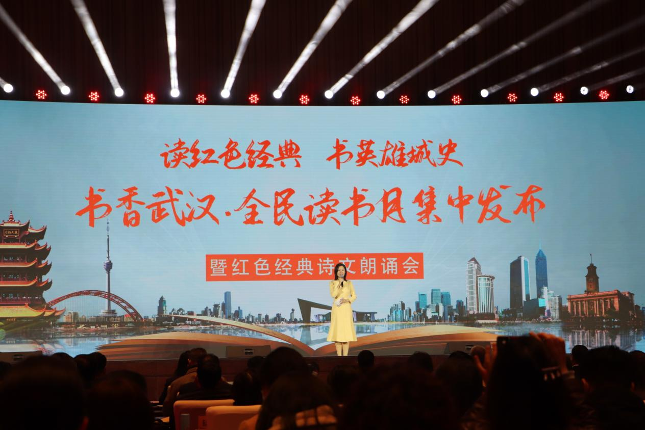 央廣網(wǎng)武漢4月9日消息(實習(xí)記者李小雪 通訊員 高文君)4月8日,由武漢市委市政府倡導(dǎo)、武漢市委宣傳部指導(dǎo)、武漢市全民閱讀活動指導(dǎo)委員會主辦、武漢出版集團(tuán)總承辦的“讀紅色經(jīng)典 書英雄城史”書香武漢·全民讀書月活動發(fā)布會在武漢會議中心舉行。大會不僅發(fā)布了2021年武漢市全民閱讀促進(jìn)會推薦武漢全民閱讀的50種優(yōu)質(zhì)圖書清單,還為現(xiàn)場觀眾獻(xiàn)上了一場詩歌朗誦“盛宴”。