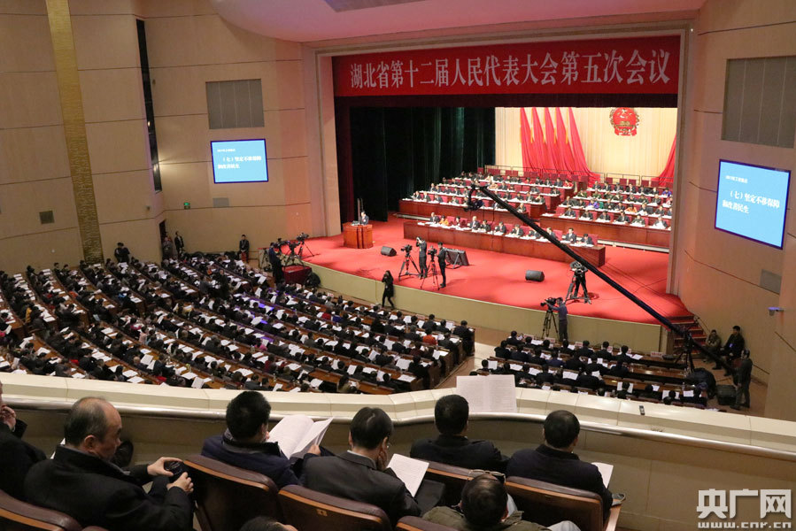 央廣網(wǎng)武漢1月15日消息(記者熊峰 張卓)1月15日上午9時,湖北省第十二屆人民代表大會第五次會議在武漢市洪山禮堂開幕。湖北省人民政府代理省長王曉東向大會作政府工作報告,報告分為2016年工作回顧、2017年工作重點和著力建設(shè)人民滿意的政府三部分。 -