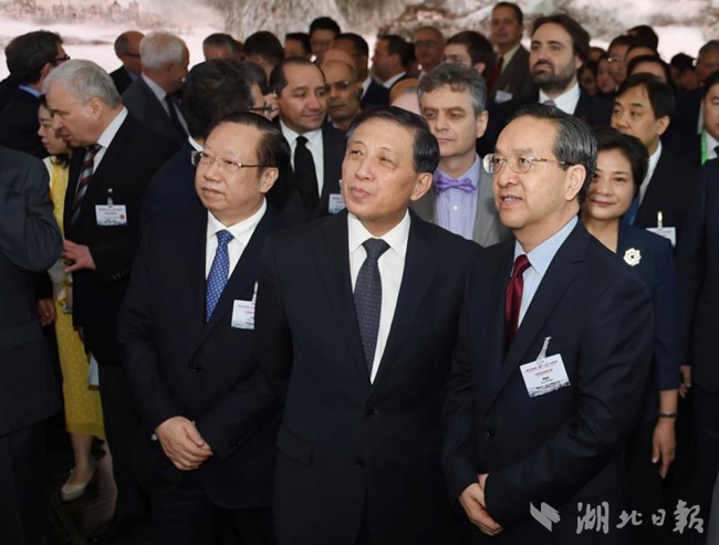 蔣超良說,黨的十八大以來,湖北認(rèn)真貫徹實(shí)施長(zhǎng)江經(jīng)濟(jì)帶發(fā)展戰(zhàn)略,加快經(jīng)濟(jì)轉(zhuǎn)型升級(jí),加快全面建成小康社會(huì),書寫了改革開放的精彩篇章。我們統(tǒng)籌推進(jìn)經(jīng)濟(jì)、政治、文化、社會(huì)、生態(tài)文明等領(lǐng)域改革,不斷增強(qiáng)發(fā)展的動(dòng)力和活力;把消除貧困作為全面建成小康社會(huì)的重中之重,打好精準(zhǔn)脫貧攻堅(jiān)戰(zhàn);踐行綠水青山就是金山銀山的理念,共抓大保護(hù)、不搞大開發(fā),著力做好生態(tài)修復(fù)、環(huán)境保護(hù)、綠色發(fā)展“三篇文章”;積極對(duì)接和融入“一帶一路”建設(shè),加快“引進(jìn)來”和“走出去”步伐。荊楚大地發(fā)生的故事,折射出新時(shí)代湖北的顯著變化,也是新時(shí)代中國(guó)大踏步前進(jìn)的生動(dòng)寫照。我們將堅(jiān)持新發(fā)展理念,堅(jiān)決打好三大攻堅(jiān)戰(zhàn),著力解決發(fā)展不平衡不充分問題,以長(zhǎng)江經(jīng)濟(jì)帶發(fā)展推動(dòng)高質(zhì)量發(fā)展。真誠(chéng)希望與各國(guó)朋友一道,秉持人類命運(yùn)共同體理念,深化在產(chǎn)業(yè)、經(jīng)貿(mào)、科教、人文、旅游等方面的務(wù)實(shí)合作,實(shí)現(xiàn)互利共贏,共創(chuàng)美好未來。