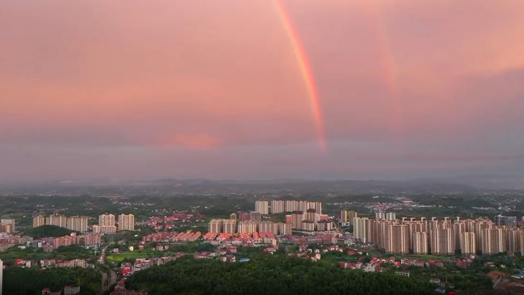 彩虹凌空 晚霞映雙清