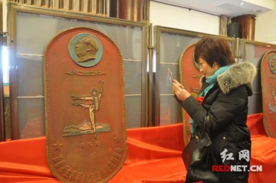為紀(jì)念毛澤東誕辰123周年,12月18日上午,“紅色經(jīng)典巨型徽章特展”在湘潭白石古玩街開(kāi)幕,共展出90余枚上個(gè)世紀(jì)50年代至70年代的紅色徽章。