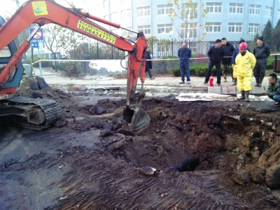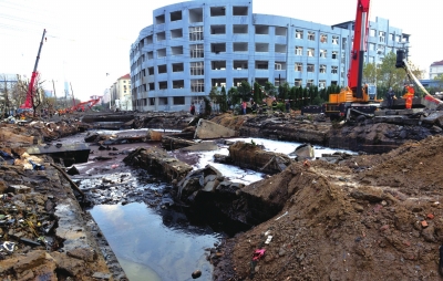 當時,漏油點路面已經(jīng)挖開了一個近3米長、2米寬、2米深的作業(yè)坑,路面上的油污已基本清理干凈。