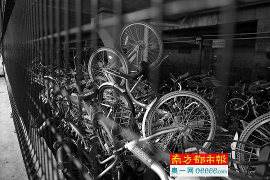 前日,深圳南山區(qū)歐環(huán)路橋底的南山區(qū)公共自行車倉庫調(diào)度中心,大量共享單車被鎖住。南都記者 趙炎雄 攝