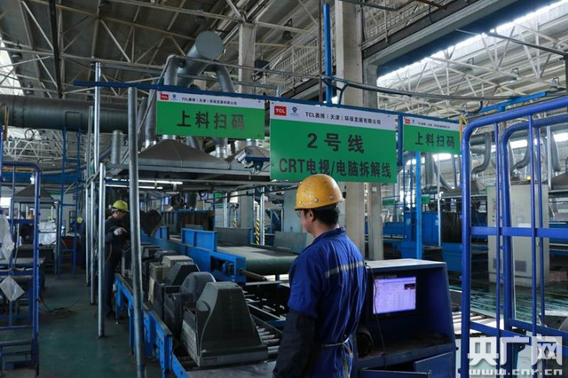 位于靜海區(qū)的天津子牙經(jīng)濟技術開發(fā)區(qū),是全國第一家以循環(huán)經(jīng)濟為主導產(chǎn)業(yè)的國家級經(jīng)濟技術開發(fā)區(qū)。近日,記者來到子牙經(jīng)濟技術開發(fā)區(qū),走進TCL奧博(天津)環(huán)保發(fā)展有限公司的拆解車間,只見在家電拆解流水線上,一臺臺廢舊電視機正被工人們熟練的拆解成顯示屏、電路板、金屬框架等多個部分,經(jīng)過后期處理,這些部件中的塑料和金屬就可以成為生產(chǎn)新產(chǎn)品的原材料。