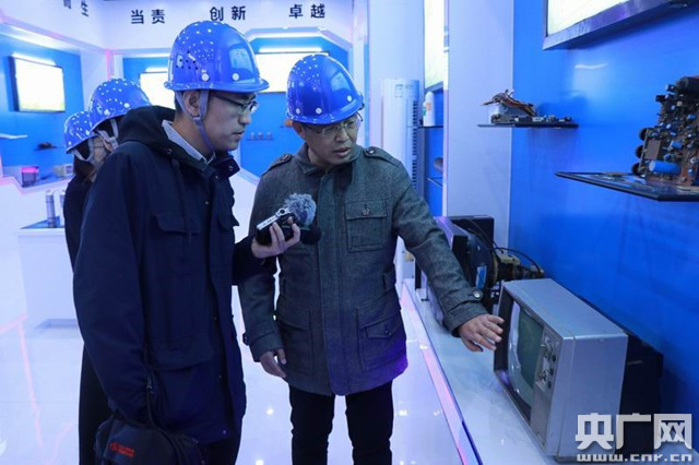 張孝富(右)介紹家電拆解后產(chǎn)生的資源(央廣網(wǎng)記者 蘇平 攝)