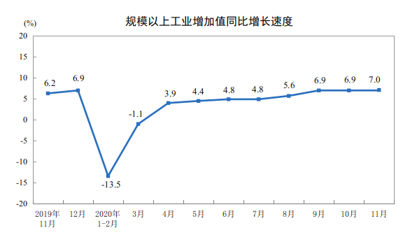 央廣網(wǎng)北京12月15日消息 12月15日,國家統(tǒng)計(jì)局發(fā)布數(shù)據(jù)顯示,11月份,規(guī)模以上工業(yè)增加值同比實(shí)際增長7.0%(以下增加值增速均為扣除價(jià)格因素的實(shí)際增長率),增速較10月份加快0.1個(gè)百分點(diǎn)。從環(huán)比看,11月份,規(guī)模以上工業(yè)增加值比上月增長1.03%。1—11月份,規(guī)模以上工業(yè)增加值同比增長2.3%。