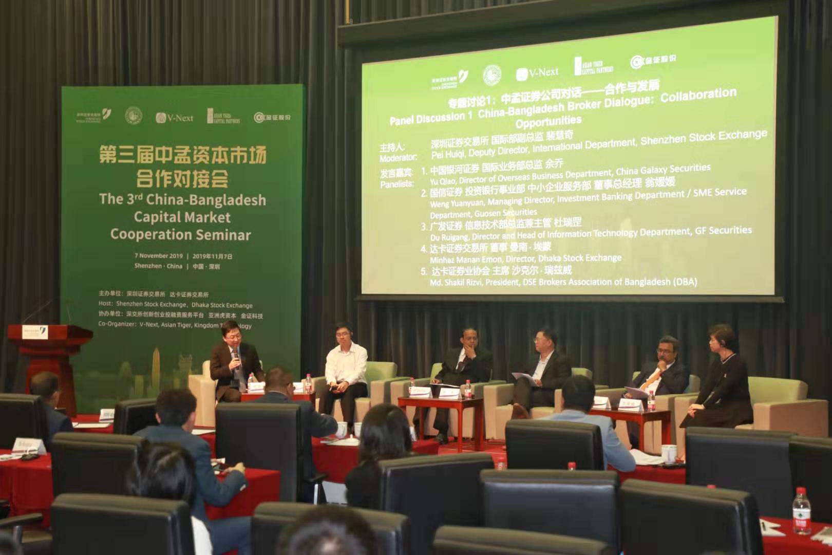 深圳證券交易所打造的創(chuàng)新創(chuàng)業(yè)投融資服務(wù)平臺V-Next是合作進(jìn)行的重要通道,在昨天的大會上,15家孟加拉企業(yè)通過該平臺進(jìn)行了跨境路演,而這只是深圳證券交易所進(jìn)行國際化發(fā)展的一個縮影。截至目前,深圳證券交易所已與46家境外交易所和金融機(jī)構(gòu)簽署合作諒解備忘錄。劉輔忠表示,資本市場的國際化合作為企業(yè)“走出去”和資本“引進(jìn)來”提供了有力支持,深圳證券交易所“利用V-Next平臺就這樣一個載體。我們搭起橋梁,讓國內(nèi)的投資方和國內(nèi)有經(jīng)驗(yàn)、有能力走出去的企業(yè),尋找在地化的伙伴和在地化的項(xiàng)目。同時對于境外的一些投資者愿意參與國內(nèi)的二級市場的交易,或者是一級市場的投資,或者是跨境的并購,我們都可以提供一些全方位的信息服務(wù)!