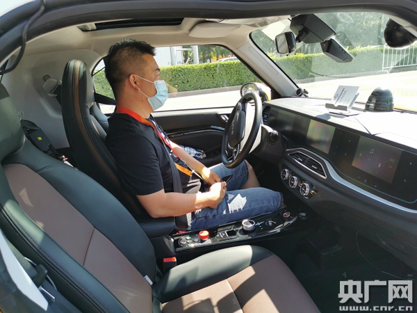 記者體驗(yàn)無人駕駛共享轎車(總臺央廣記者佟亞濤 攝)