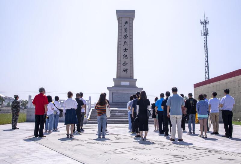 此行首站來到了興化市昌榮鎮(zhèn)嚴(yán)昌榮烈士紀(jì)念碑前,大家懷著十分崇敬的心情,向烈士紀(jì)念碑敬獻(xiàn)花籃和鮮花,行三鞠躬禮,表達(dá)對革命先烈的無限緬懷和哀思。
