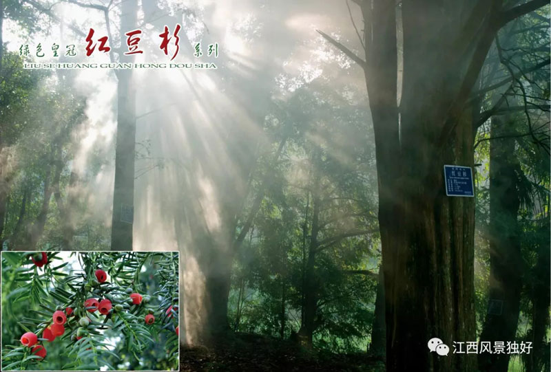 銅鼓是中國(guó)南方紅豆杉之鄉(xiāng),全縣紅豆杉總數(shù)有80多萬(wàn)株,直徑10厘米以上的約50萬(wàn)株,且樹齡在1200年的達(dá)上千株。銅鼓紅豆杉的數(shù)量之多、群落之大,非常罕見(jiàn),堪稱“南方紅豆杉王國(guó)”。經(jīng)國(guó)家林業(yè)局、北京大學(xué)、北京師范大學(xué)的專家聯(lián)合考證,銅鼓花山紅豆杉景區(qū)是迄今為止全國(guó)最大的紅豆杉景區(qū),也是全世界迄今有記載的最大原始野生紅豆杉生態(tài)群落。景區(qū)內(nèi)野生紅豆杉面積達(dá)10512公頃,直徑10公分以上的南方紅豆杉有40萬(wàn)株以上,最大單株米徑達(dá)1.64米、樹齡在1200年以上,四人合抱不下,被譽(yù)為“千年紅豆杉王”。
