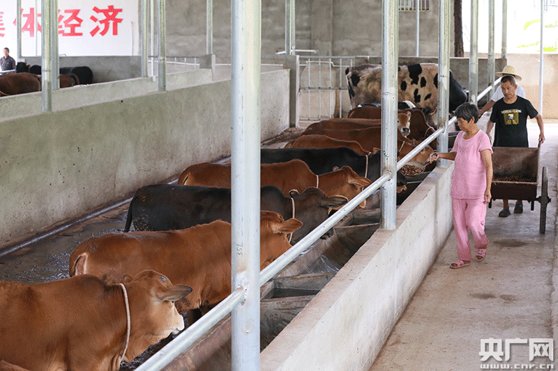 央廣網(wǎng)瑞昌6月18日消息(記者王一凡 通訊員雷勉鴻 王定華)“4月27日,全面消毒。5月7日,全面消毒。5月17日,全面消毒……”6月11日,走進(jìn)江西省瑞昌市陽(yáng)茂養(yǎng)殖專(zhuān)業(yè)合作社辦公室,可見(jiàn)墻壁上赫然記下這些,每十天進(jìn)行一次全面消毒。當(dāng)天早上7點(diǎn),瑞昌南陽(yáng)鄉(xiāng)嚴(yán)坂村72歲的飼養(yǎng)人員宋增秋和老伴宋雪貴在這里開(kāi)始工作,定時(shí)給肉牛喂養(yǎng)飼料、清理糞便。他們住在這里,晚上通過(guò)房間窗戶觀察肉牛的“動(dòng)靜”。