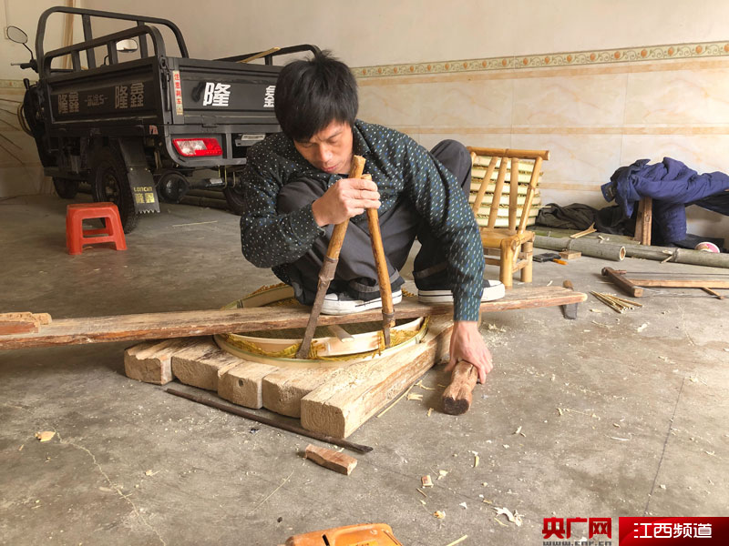 為了謀生,17歲那年,他跟著父親學(xué)做竹器。破蔑、支架、編織、固定組裝……這些體力活,李福昌干起來比常人吃力得多。干活時借助的木墩,有兩個深深的凹痕;破篾的凳子,已經(jīng)用壞了十幾個。