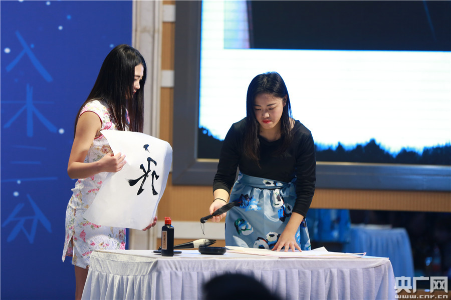 央廣網(wǎng)北京1月12日消息 昨日(11日),由方正手跡發(fā)起的“字體手護(hù)計(jì)劃”首屆年度分享交流會(huì)在北京大學(xué)舉行。教育部語言文字信息管理司司長田立新、著名書法家葉培貴、中央人民廣播電臺(tái)央廣網(wǎng)副總編輯伍剛、方正集團(tuán)副總裁劉建應(yīng)邀出席,與現(xiàn)場大學(xué)生代表一起分享了有關(guān)漢字文化傳承的新形勢、新方法。圖為“字體守護(hù)大使”現(xiàn)場書寫“永”字。 -