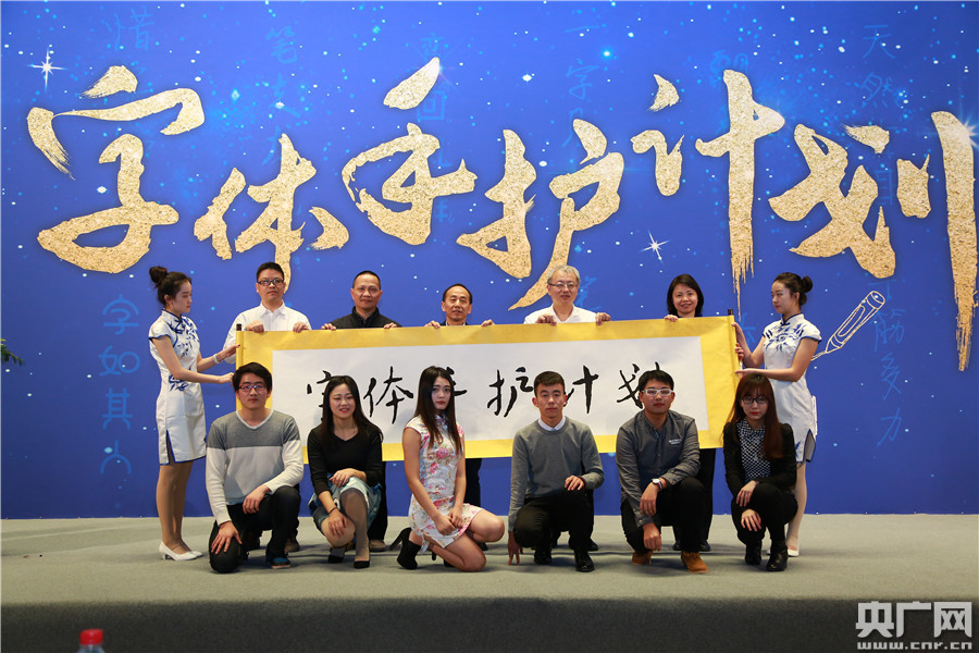 央廣網(wǎng)北京1月12日消息 昨日(11日),由方正手跡發(fā)起的“字體手護(hù)計(jì)劃”首屆年度分享交流會(huì)在北京大學(xué)舉行。教育部語言文字信息管理司司長田立新、著名書法家葉培貴、中央人民廣播電臺(tái)央廣網(wǎng)副總編輯伍剛、方正集團(tuán)副總裁劉建應(yīng)邀出席,與現(xiàn)場大學(xué)生代表一起分享了有關(guān)漢字文化傳承的新形勢、新方法。圖為與會(huì)專家學(xué)者與6位“字體手護(hù)大使”一起啟動(dòng)“2017字體守護(hù)計(jì)劃”。 -