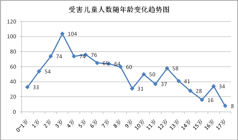 受害兒童人數(shù)隨年齡變化趨勢(shì)圖