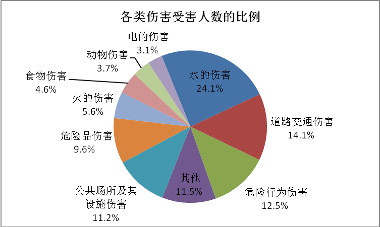 各類(lèi)意外傷害受害兒童人數(shù)所占比例