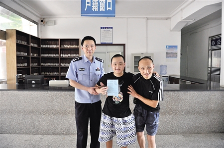 安排好一切后,6日一大早,龔小兵便開車來到小峰家附近,和胡仁明一起將小峰扶上車,隨即上路。一路上小峰非常興奮,而龔小兵卻眉頭緊鎖,因為從重慶到渠縣臨巴派出所來回有400多公里,包括100多公里山路,一個急剎、一個轉(zhuǎn)彎都可能給小峰造成傷害!拔议_車的時候眼睛都不敢眨一下,生怕出問題!饼徯”f,好在一路順利,到臨巴派出所后只花了十幾分鐘就辦好了相關(guān)手續(xù)。