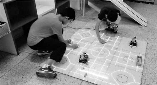 “路線有問題,還需要調(diào)整。”很快,他們又竄進隔壁的計算機房,啪啪啪敲打鍵盤,調(diào)整機器人的編程代碼。