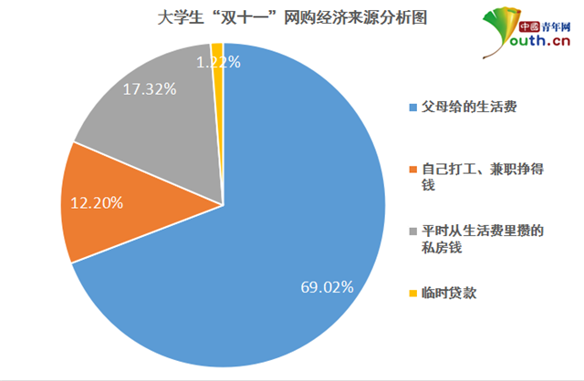 圖為大學(xué)生“雙十一”網(wǎng)購經(jīng)濟(jì)來源分析。中國青年網(wǎng)實(shí)習(xí)記者 李華錫 制圖