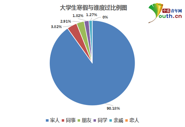 圖為大學(xué)生寒假與誰(shuí)度過(guò)比例圖。中國(guó)青年網(wǎng)實(shí)習(xí)記者 李華錫 制圖