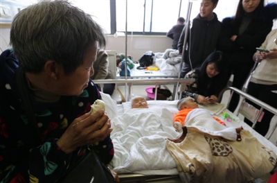 “孩子營養(yǎng)不良,沒有血色!蓖蹼p的朋友圈描述說,老人年紀大,只能一個一個抱,孩子長期睡著,頭都變形了。熬了一個通宵的老人,白天扛不住睡著了,連續(xù)三次孩子輸液沒有液體了,都是自己家人發(fā)現(xiàn)提醒。王雙在朋友圈呼吁,能不能幫忙請個護工。
