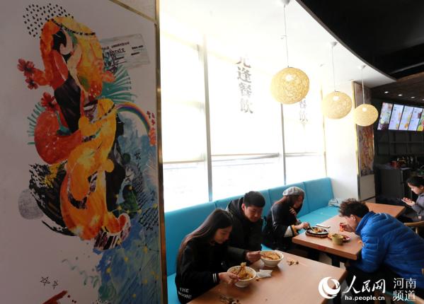 2月26日,在河南鄭州華北水利水電大學(xué),記者看到,學(xué)生們排隊在裝扮一新的學(xué)校食堂里就餐。曾經(jīng)的硬座桌凳換成了軟座桌椅,屋頂以星空為主題背景,獨特的燈飾造型,十二星座圖案,山水、動物、人物繪畫,池塘里游來游去的金魚、蓮藕將環(huán)境布置的十分溫馨、雅致,炫美。