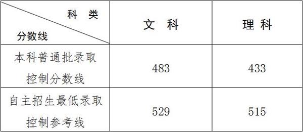 3.高水平運動員文化錄取控制分數(shù)線:文科483分、理科433 分。其中在教育部“陽光高考”平臺公示可享受本科普通批錄取控制分數(shù)線65%優(yōu)惠分值的考生,分別按文科313分、理科281分執(zhí)行。