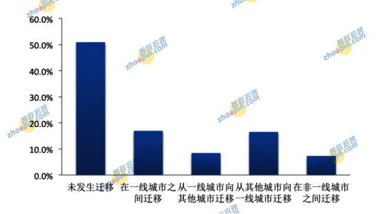 過半海歸回國后未發(fā)生國內(nèi)城市間遷移,16.5%的海歸向一線城市遷移