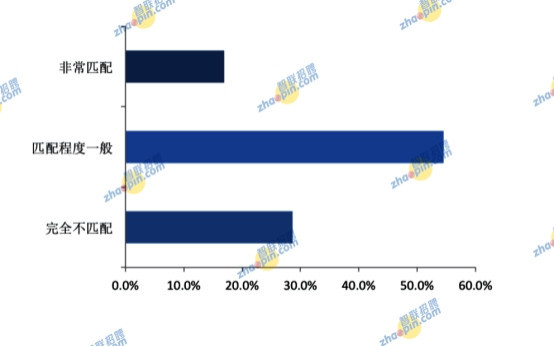 進一步調(diào)查發(fā)現(xiàn),海歸群體對當前工作崗位與其海外所學(xué)專業(yè)的匹配度偏低,認為非常匹配的僅為16.9%,認為匹配程度一般的為54.5%,認為完全不匹配的占28.6%。根據(jù)智聯(lián)招聘此前發(fā)布的《2017年大學(xué)生求職指南》數(shù)據(jù)來看,有38.5%的國內(nèi)大學(xué)生存在與專業(yè)不對口的情況。看來,不論是國內(nèi)的大學(xué)生,還是海歸群體,均存在專業(yè)不對口的情況。