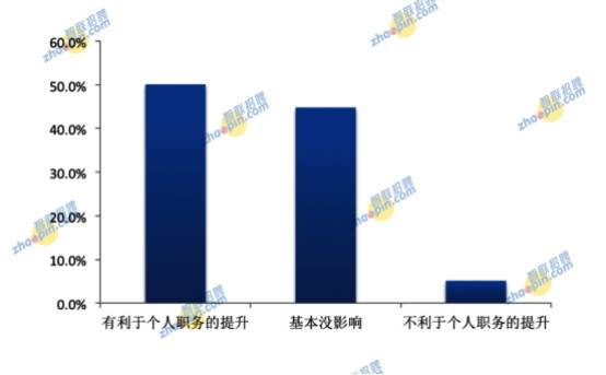 從留學(xué)經(jīng)歷對個人國內(nèi)職務(wù)變化的作用來看,50.1%海歸認為留學(xué)經(jīng)歷有利于個人職務(wù)提升,44.8%的認為基本沒有影響,剩余5.1%的海歸人員認為留學(xué)背景不利于個人職務(wù)晉升。