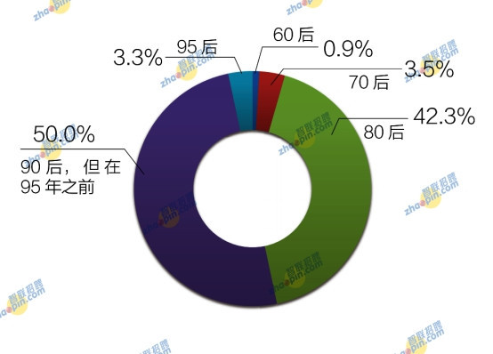 年齡方面,以80后和90后海歸為主,其中,80后海歸占比42.3%,90后海歸占比為53.3%,經(jīng)過細分發(fā)現(xiàn),90-95年之間的海歸占比為50.0%,95后僅占3.3%。70后、60后海歸占比較少,分別為3.5%、0.9%。