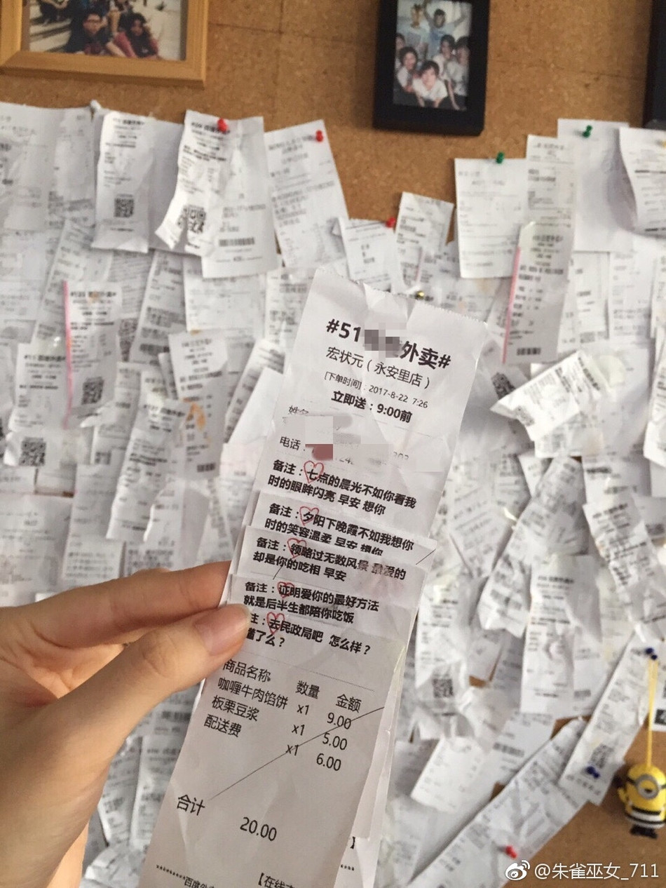 倫敦留學(xué)生王某堅(jiān)持一年,每天在凌晨跨時(shí)差,為女友送早餐,還會(huì)在每天留言一段“早安情話”,這些見證跨國戀的留言外賣單不僅是二人愛情的見證,更是一份凌晨說早安的獨(dú)特情書。網(wǎng)友:嫉妒使我面目全非!