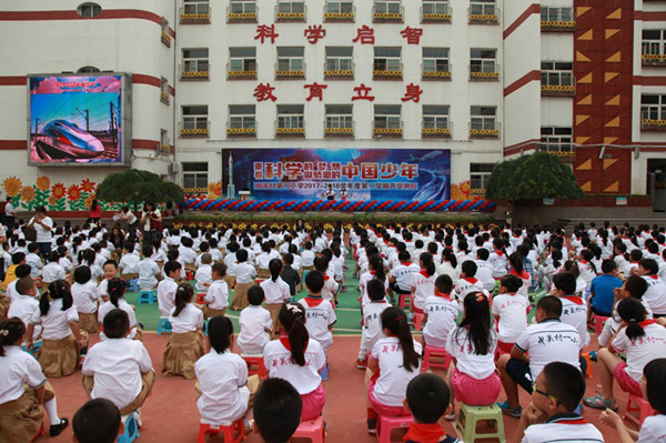 本屆開學典禮主題為“乘著科學的翅膀 做驕傲的中國少年”,校長劉暢在致辭中表示,希望孩子們把握難得的好奇心,不斷思考、不斷探索,乘著科學的夢想,做驕傲的中國少年。