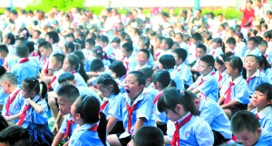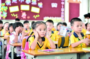 鐵一小學(xué)一年級(jí)新生第一節(jié)課,同學(xué)們?nèi)褙炞。廣州日全媒體記者王燕 攝