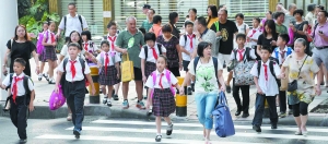 昨日一大早,越秀區(qū)的街道上滿是趕回學(xué)校的孩子和家長。廣州日?qǐng)?bào)全媒體記者黎旭陽 攝