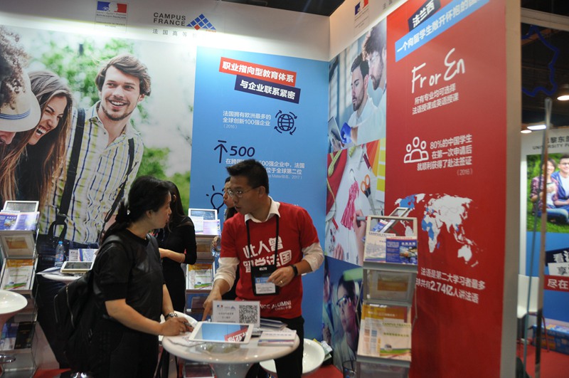 人民網(wǎng)北京10月23日電 近日,由中國教育國際交流協(xié)會主辦的2017中國國際教育展在北京國家會議中心開幕。來自加拿大、法國、德國、意大利、日本、英國和美國等近40個國家和地區(qū)的510余所海外院校參加展會,向中國學(xué)生和家長介紹本國的招生現(xiàn)狀,并提供現(xiàn)場面試。