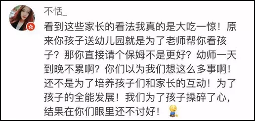有老師留言表示,這個(gè)鍋老師也不背,將幼兒園想成“把孩子往學(xué)校一扔”,這位家長(zhǎng),你是不是有什么誤解。