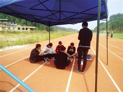食堂里人太多,部分學(xué)生干脆打包飯菜到球場吃