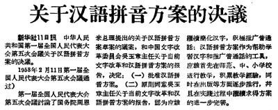 1958年2月12日,《光明日報》1版刊發(fā)《關于漢語拼音方案的決議》