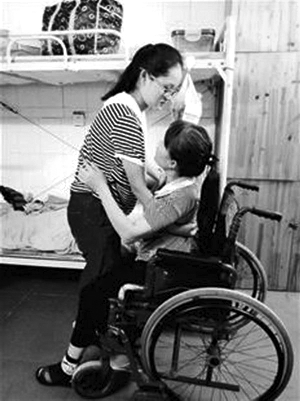 這是一間專門開辟的宿舍,寬敞明亮。不僅有獨(dú)立衛(wèi)生間、熱水洗浴室,還有配套的書桌和衣柜,輪椅推進(jìn)來后,并不顯得擁擠。“這條件太好了,以前家里住的是平房,一下雨就淹水,現(xiàn)在我們再不用遭罪了。”張顯翠有些哽咽,郭紅雁則忍不住到處觀看。