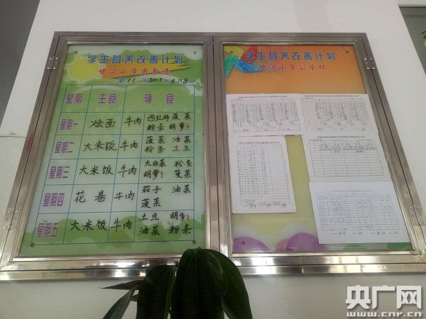 甘溝小學(xué)的營(yíng)養(yǎng)午餐食譜 攝/記者 王啟慧