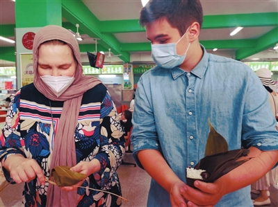 當(dāng)天活動(dòng)中,外國專家和家屬們還來到沈陽藥科大學(xué)食堂,親自動(dòng)手學(xué)習(xí)包粽子。雖然是初次體驗(yàn),但大家神情都十分專注,卷粽葉,包糯米,打繩結(jié)……一個(gè)個(gè)形態(tài)各異、包裹嚴(yán)實(shí)的粽子呈現(xiàn)盤中,成就感十足。“我來中國有十多年了,非常喜歡中國的傳統(tǒng)文化和節(jié)日美食,特別喜歡吃粽子,但親手包粽子還是第一次!眮碜园突固沟陌桶蜖柺侵锌圃航饘傺芯克芯繂T,他告訴記者,自己在中國完成了博士、博士后的學(xué)習(xí)和工作,平時(shí)對中國歷史很感興趣,特別喜歡沈陽這座城市,印象中沈陽人都很熱情。