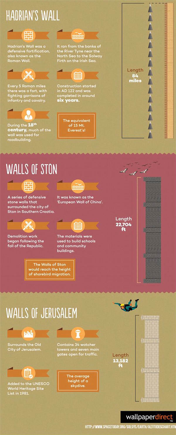 【環(huán)球網(wǎng)綜合報道】據(jù)英國《每日郵報》3月4日報道,英國織物壁紙網(wǎng)站上近日發(fā)布了一組有關于世界上著名城墻的信息圖,意在吸引更多的游客,其中我國著名的長城也位列其中。
