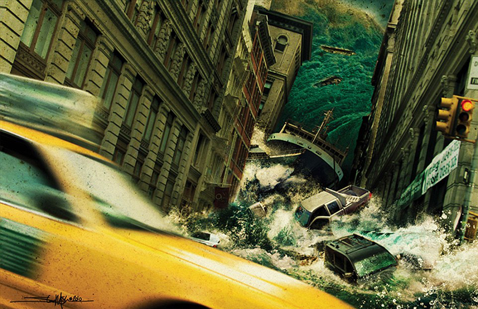 國際在線專稿:據(jù)英國《每日郵報》12月23日報道,加拿大藝術(shù)家史蒂夫·麥吉近日發(fā)布許多自己創(chuàng)作的世界末日圖,幾乎包括了每種導(dǎo)致世界被終結(jié)的可能情況,比如大洪水、超級地震等。此外,還有飛機墜毀在紐約市中心、悉尼港出現(xiàn)黑洞、法國海岸大規(guī)模漏油等場景。