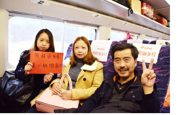 今年春運(yùn)期間,同程火車票聯(lián)合各方,承包了廣州南→貴陽北、廣州→邵陽兩趟列車將在穗務(wù)工人員、貧困大學(xué)生等漂泊在外的2000余名游子免費(fèi)送回家鄉(xiāng)。1月15日16點(diǎn)48分,廣州至邵陽的“同程返鄉(xiāng)號”愛心專列已經(jīng)成功抵達(dá)終點(diǎn)邵陽站。
