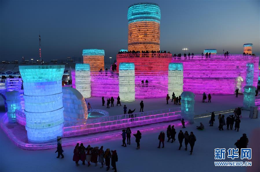2月7日,游客在哈爾濱冰雪大世界園區(qū)游玩拍照。春節(jié)長(zhǎng)假后,哈爾濱冰雪大世界依舊游人如織,流光溢彩的冰建筑、巧奪天工的冰雕作品和百玩不厭的冰雪娛樂(lè)活動(dòng),讓天南海北的游客流連忘返。新華社記者 王建威攝 -